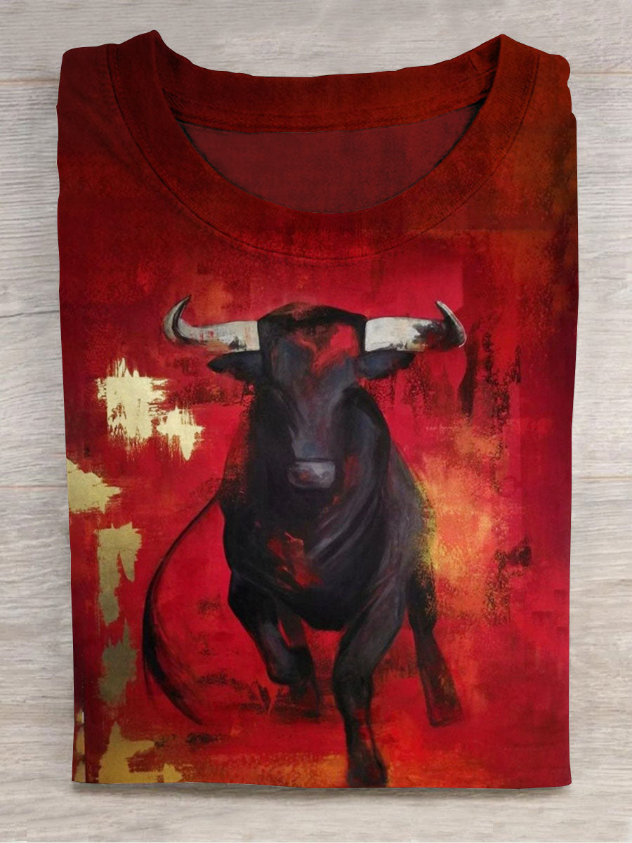Bull Art Print Crew Neck Unisex Tee