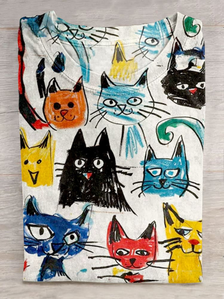 Cute Kid Drawing Cat Art Print Unisex Tee