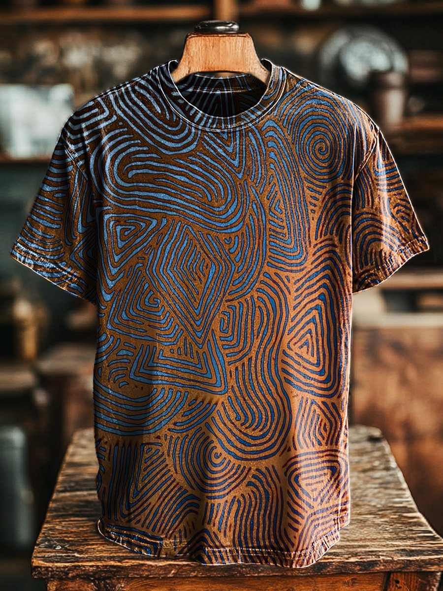 Unisex Vintage Line Geometric Art Print Casual Loose Tee